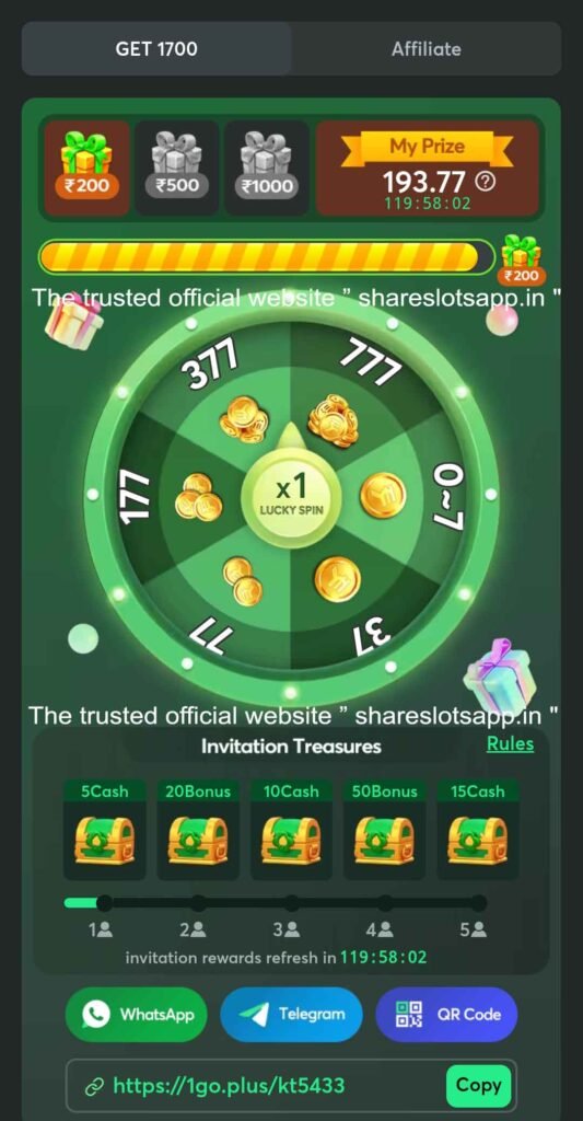 App me “Get ₹1700” icon par click karke link share karein.