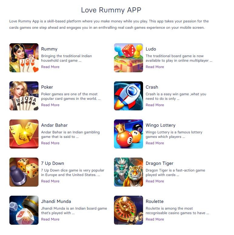 Love Rummy ek online gaming app hai jisme Rummy, Ludo, Poker aur 50+ games khelne ka option milta hai.